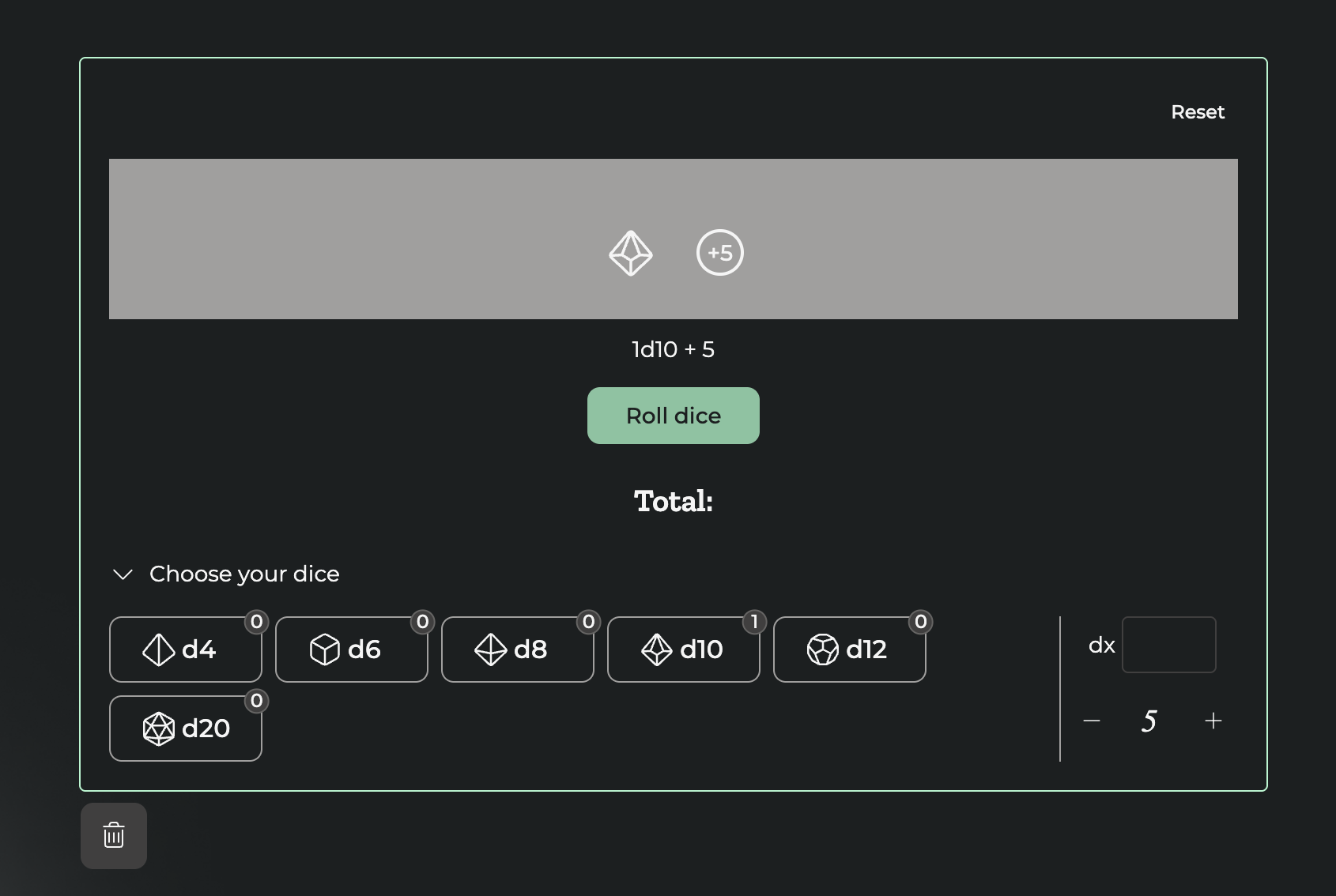Le jet de dés permet au MJ de lancer des dés virtuels. La fonctionnalité permet de lancer et de créer des dés classiques du d4 au d20, et également des dés personnalisés.